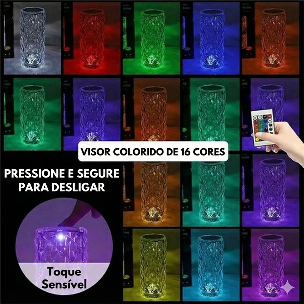 16 opções de cores e ajuste de intensidade